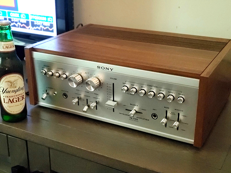 in 2020, this beautiful amp has an original Sony walnut cabinet in